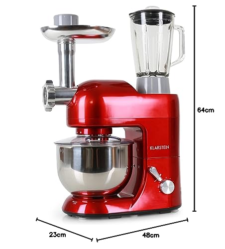 - 3-IN-1 DELUXE DESIGN: Diese Küchenmaschinen sind nicht nur zum Backen geeignet, sondern verfügen auch über einen Fleischwolf und einem 1,5L Mixer-Aufsatz, mit dem du ganz einfach Shakes, Smoothies, cremige Suppen und vieles mehr mixen kannst.